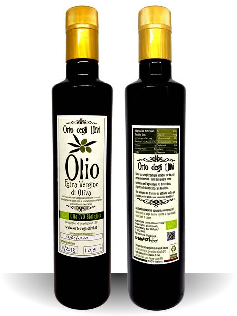 L’olio bio Italiano dell’Orto degli Ulivi si presenta di color verde vivace con riflessi dorati. Dal gusto morbido e delicato, è consigliato per condire piatti delicati. Per l’alta qualità con cui viene prodotto e le delicate note che lo caratterizzano, il nostro Olio BIO Italiano è particolarmente indicato per l’alimentazione dei bambini, un alimento che protegge e cura la salute del nostro corpo e della nostra mente.